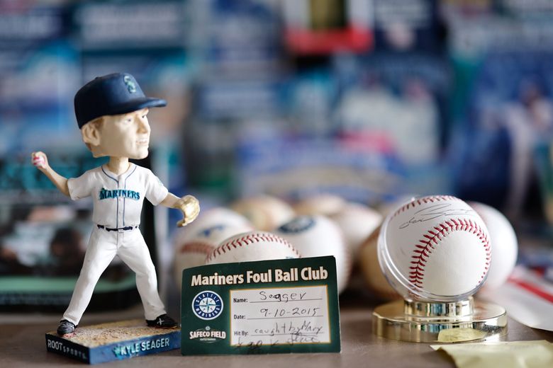 Dos pequeñas mesas en el garaje mostraban una colección de recuerdos de temporadas pasadas. Un cabezón de Félix Hernández de 2012. Un balón de foul que atrapó Mattison, que fue golpeado y firmado por Kyle Seager, su jugador favorito. El respaldo de una silla del estadio, regalado a Mattison en su retiro, también firmado por Seager. Un pin de 1996 que decía “Griffey para presidente”.