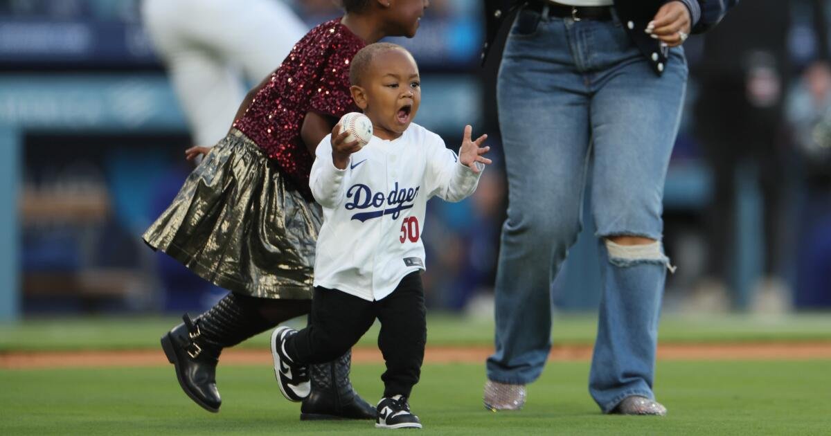 El hijo de 2 años del jardinero de los Dodgers, Mookie Betts, arrojó el primer lanzamiento ceremonial en Hes la noche de cabezal de papá el martes en el Dodger Stadium, pero no antes de hacer un descanso para el jardín derecho con la pelota.