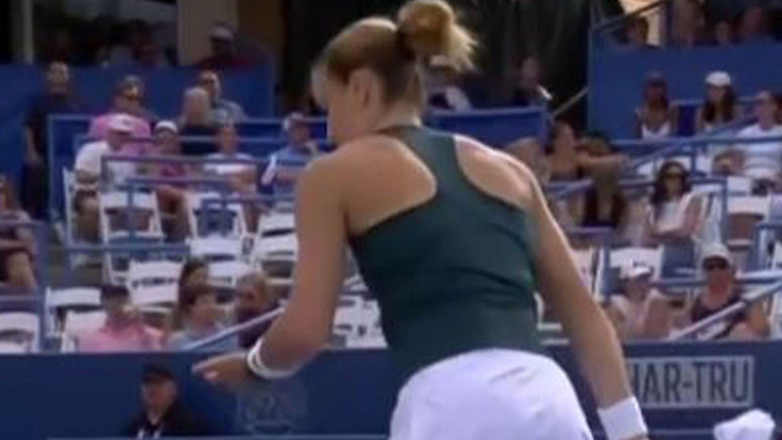 La estrella del tenis, Maria Sakkari, eliminó suavemente un error de la cancha durante su partido anoche … solo para que un chico de pelota lo pisara.