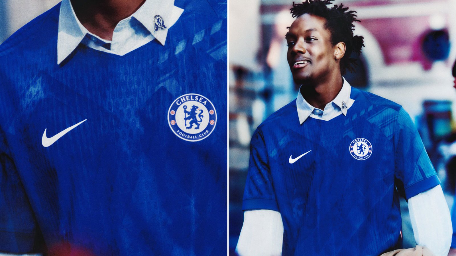 La nueva camisa mantiene el color azul clásico de Chelsea con un patrón único y un destello de detalles blancos en un collar de cuello en V.