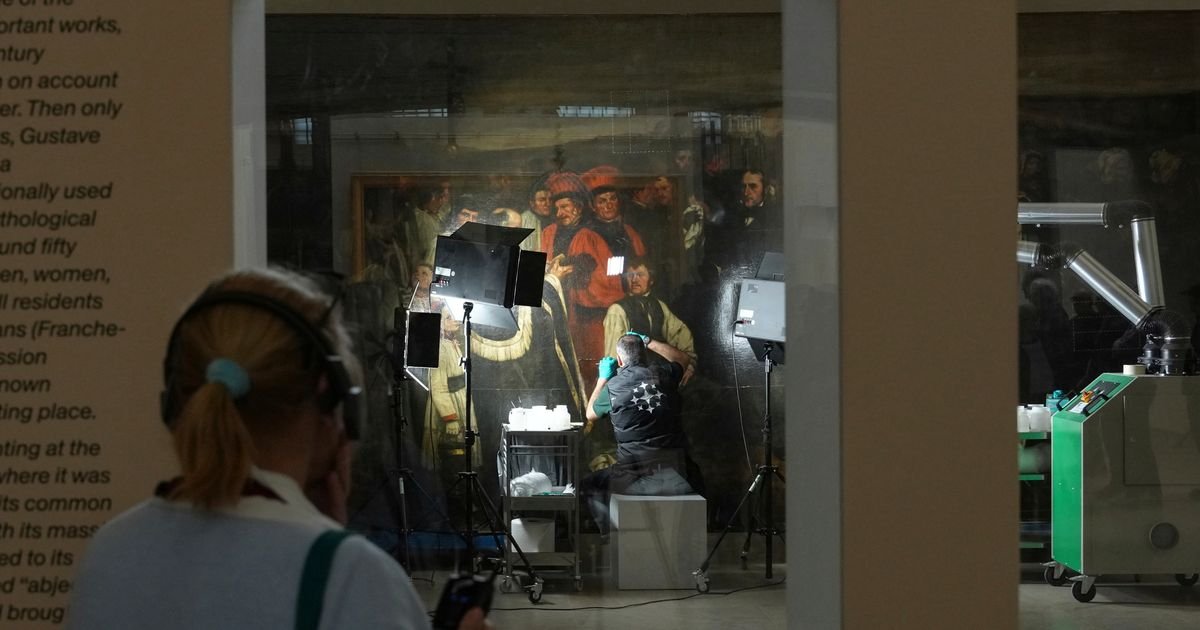 La limpieza y las reparaciones de “un entierro en Ornans”, una de las obras distintivas del museo que pintó entre 1849 y 1850, se llevan a cabo en un recinto a medida con ventanas para que los visitantes se peine.
