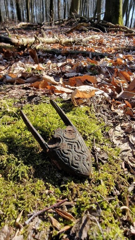 Un detector de metales ha descubierto un raro Ajuste de la vaina de espada medieval decorada en el bosque cerca de Iława en el norte de Polonia. Tiene más de mil años y se conserva en su totalidad. Los arqueólogos creen que pertenecía a un guerrero prusiano.