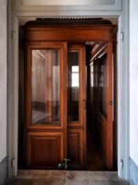 Un ascensor eléctrico instalado para la reina Margherita de Italia en 1905 ha sido restauradono a su función original, sino a su belleza original con paneles de madera. El ascensor conectó el primer piso donde la Reina y sus damas vivían en la planta baja de la Palazzina di Caccia di Stupinigi, un albergue de caza real en las afueras de Turín. Tenía una cabaña de madera con una puerta corredera con ocho vidrio esmerilado. Se pierde un panel de botón Bakelite, dejando solo rastros minuciosos.