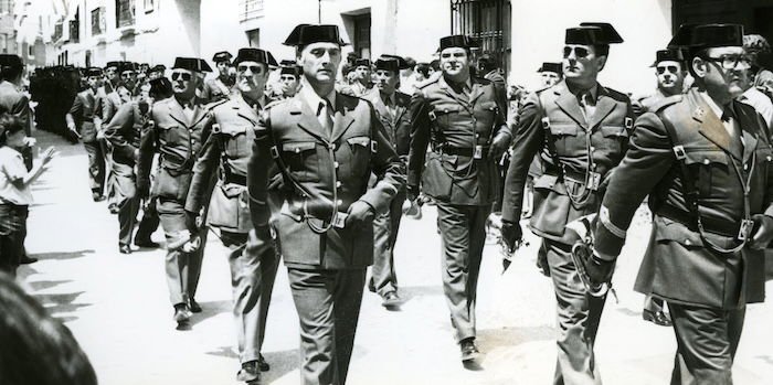 A pesar de esto, la figura de Guardia Civil se alzó en los recuerdos de los que visitaron España con Franco. En las entrevistas que realicé con una variedad de viajeros británicos que viajaron o vivieron en España durante el régimen de Franco, queda claro que los turistas comunes podrían estar en el extremo receptor de las tácticas autoritarias de Guardia Civil. En 1971, de 12 años, Andrea fue llevada a España de vacaciones por sus padres y recordó uno de esos encuentros en Sitges. Su padre estaba tomando fotografías cuando un policía con un “uniforme realmente extraño” lo amenazó con un rifle, acusándolo de espiar. El Guardia solo estaba satisfecho después de arrancar la película de la cámara y confiscarla. Charlie describió un encuentro similar en un animado bar de San Sebastián en 1973. Dos guardias entraron y “la atmósfera se congeló, todo estaba en silencio”. Permaneció así hasta que se fueron cinco minutos después. Algunos viajeros británicos dieron testimonio de la caravana de Franco. Andrew fue detenido al lado de un camino a Madrid en 1971: “Había literalmente un policía, un Guardia Civil, supongo, de pie cada 100 yardas en ambos lados del camino apoyado en sus rifles que se veían bastante aburridos … Creo que viajamos un par de horas al norte con estos políticos cada cientos de yardas”. Agregó que esta “fue probablemente la única vez en ese viaje que sentí, Dios, estamos viviendo en una dictadura”.