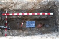 La excavación también descubrió la primera inscripción en la necrópolis. Tallado en una masa la losa de piedra, la inscripción griega dice: “Tumba de Herodore y …” El segundo nombre es probablemente el nombre de su esposa o un pariente y la piedra una vez se paró sobre la entrada de la tumba. Más tarde se reutilizó como una cubierta para una tumba, por lo que no sabemos su ubicación original.