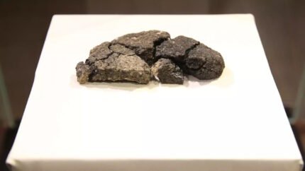 El pan plano y plano de cinco pulgadas de diámetro se descubrió en septiembre de 2024. Se arrancó una pieza y el resto del pan se quemó y enterró al umbral de una casa. Los arqueólogos creen que este fue un ritual para brindar abundancia y prosperidad a la vivienda. El carbón conservó el pan, lo que permite analizar una muestra para identificar sus ingredientes.