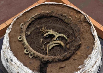 La microexcavación también descubrió plantas utilizadas como material de embalaje y acorden orgánico fibroso uniendo algunas de las pulseras. Se han encontrado otros tesoros con objetos posicionados de tal manera que sugieren que se habían unido, pero este es el primer ejemplo en el que las fijaciones orgánicas sobrevivieron en su lugar, lo que demuestra que estaban atados antes del entierro.