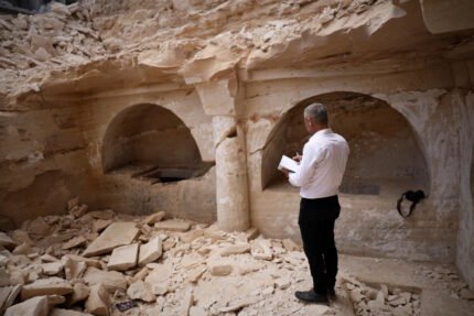 A Complejo de tumbas de la era bizantina ha sido descubierto por los trabajadores de la construcción que limpia los escombros de un edificio destruido en la ciudad del norte de Maarat al-Numan. El complejo data de alrededor del siglo VI y se compone de dos grandes cámaras de entierro con múltiples tumbas.
