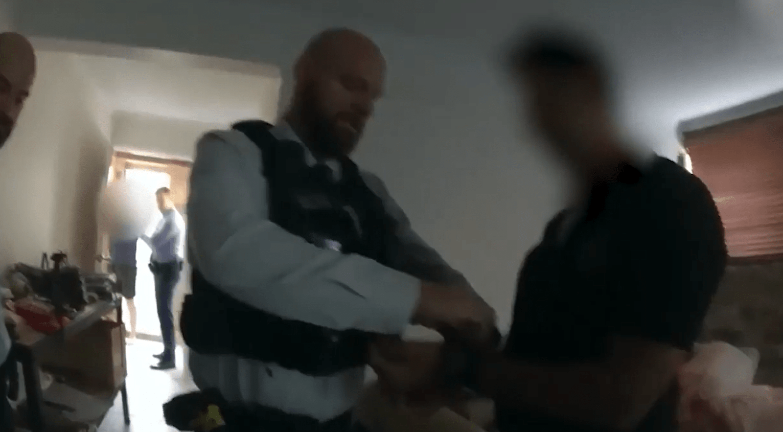 Las imágenes dramáticas de BodyCam lo muestran apareciendo cuando los policías entran en la habitación donde estaba durmiendo en un sofá plegable.