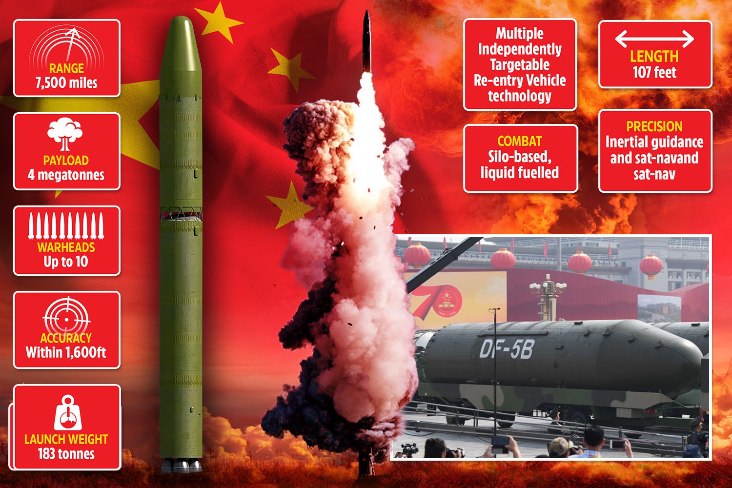 Se dice que el DF-5B ofrece un rendimiento de tres a cuatro megatones.