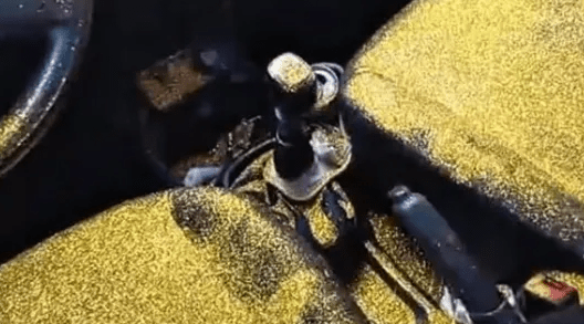 Y el coche del desafortunado muchacho también quedó cubierto por una capa de polvo brillante.