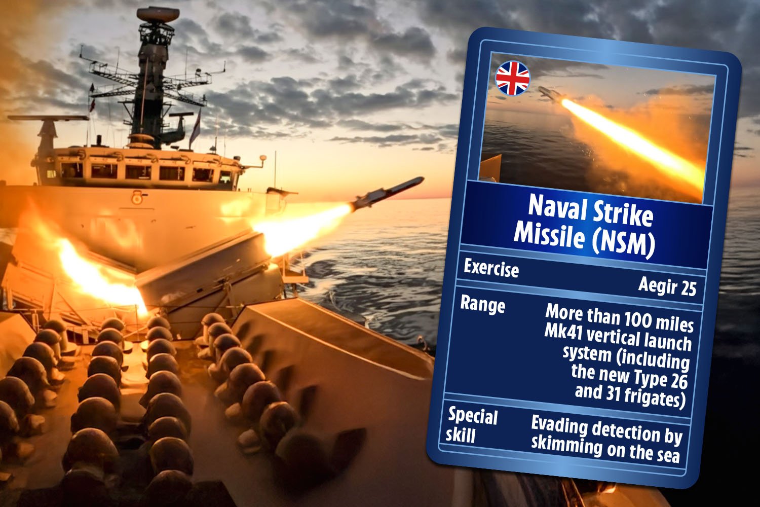 Él dijo: “El NSM es uno de los misiles más avanzados en nuestro arsenal naval. Le dará a la Royal Navy y a nuestros aliados una ventaja contra nuestros enemigos”.