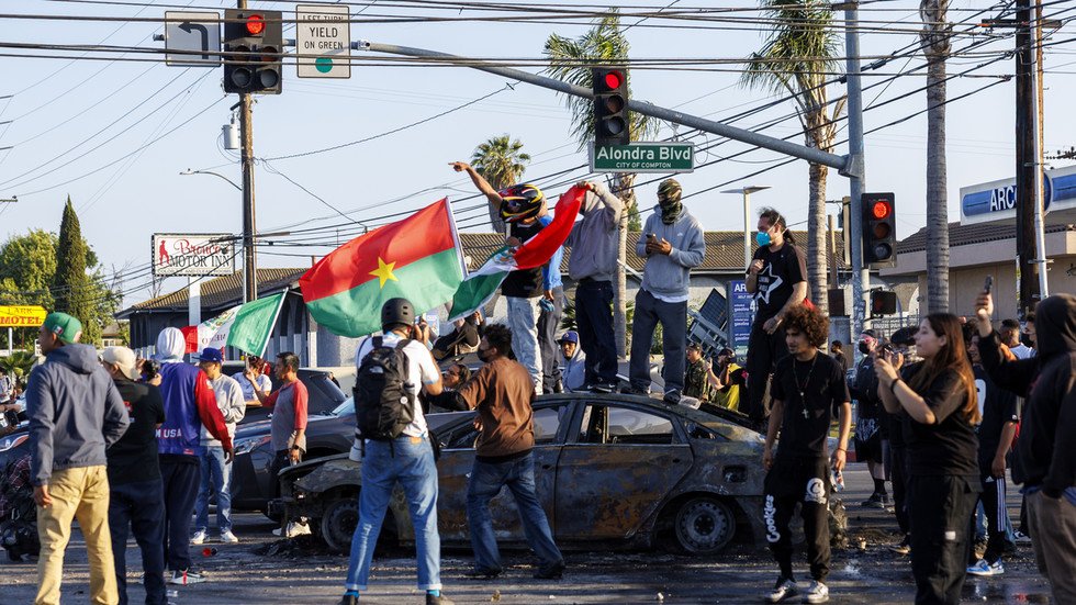 Las protestas estallaron el viernes después de que las autoridades de inmigración arrestaron a más de 40 personas en un estacionamiento de Home Depot y en el fabricante de ropa de vestimenta de ambiente bajo sospecha de usar “Documentos ficticios de los empleados”. Las manifestaciones que denuncian la política de inmigración de línea dura de Trump se convirtieron rápidamente en saqueos y violentos enfrentamientos con la policía.