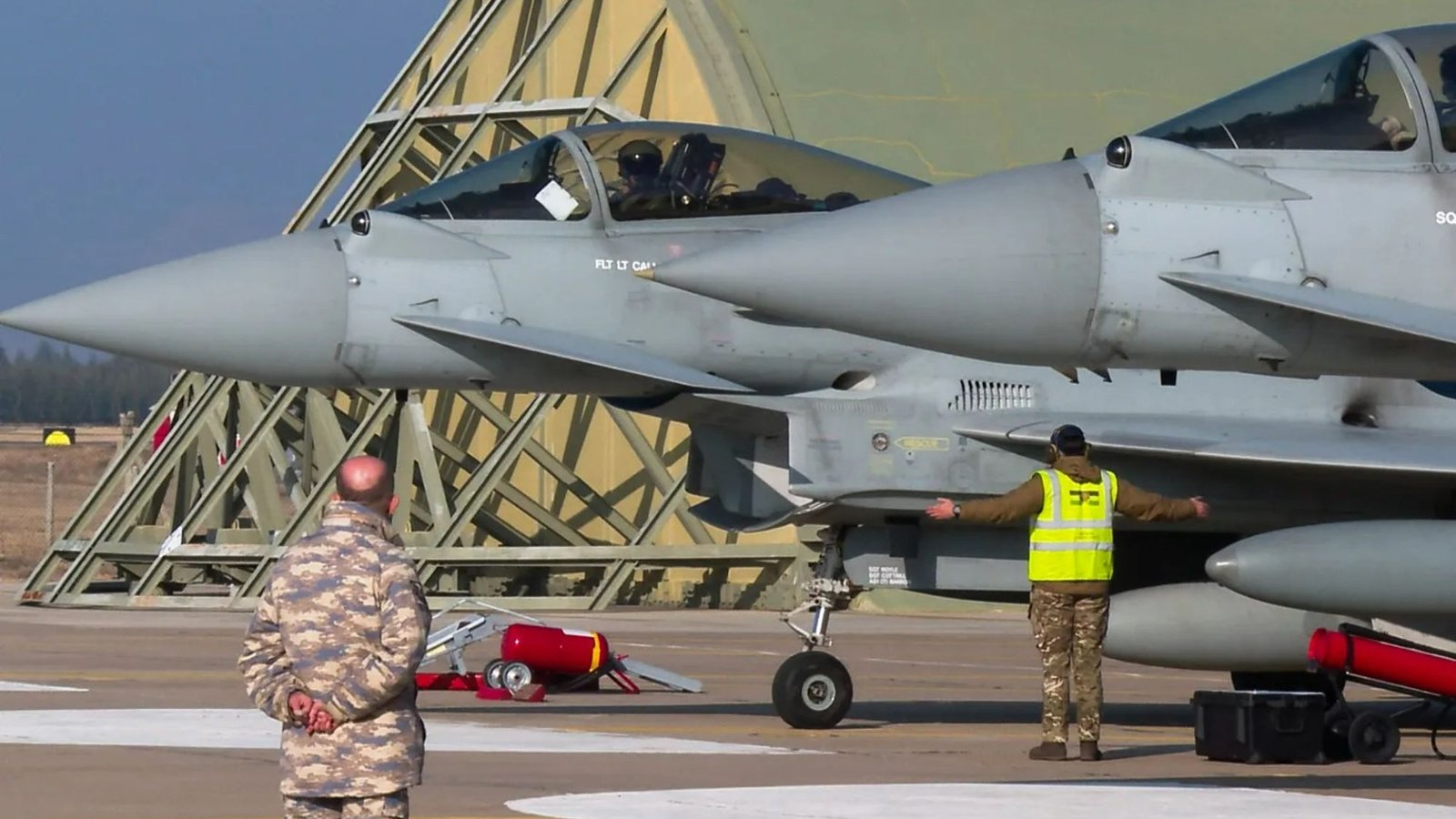 Según los informes, los aviones de tifón británico podrían desplegarse en el espacio aéreo ucraniano para cubrir las tropas británicas en el suelo vigilando un alto el fuego.