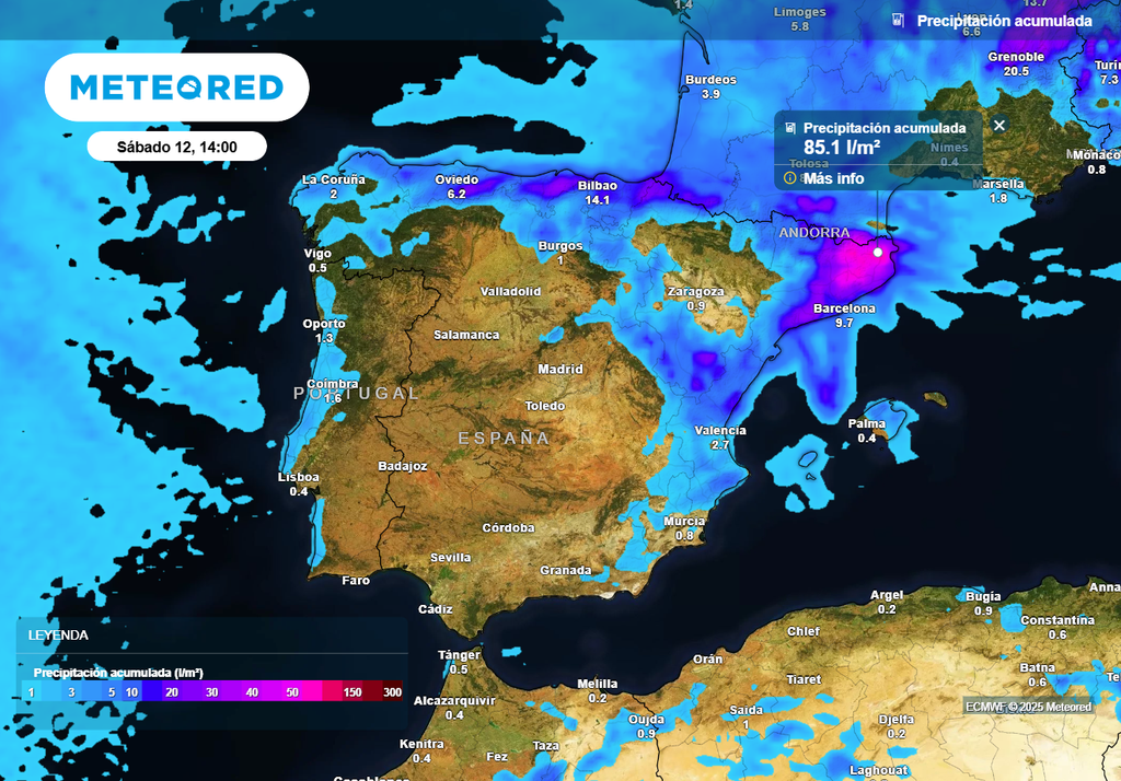 Más allá de la amenaza costera inmediata, el sistema también golpeará las áreas interiores, incluidas las montañas Cantabrianas, el este de Castilla y León, Navarre y La Rioja con intensas tormentas y fuertes lluvias.