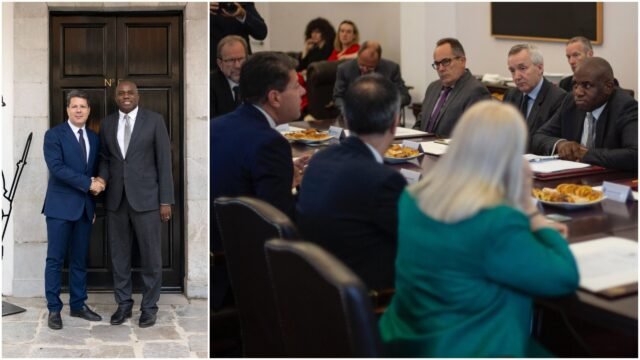 Picardo celebró una reunión del gabinete en el No 6 Convent Place, la sede del gobierno de Gibraltar, con el secretario de Relaciones Exteriores, David Lammy y el ministro de Europa, Stephen Doughty.