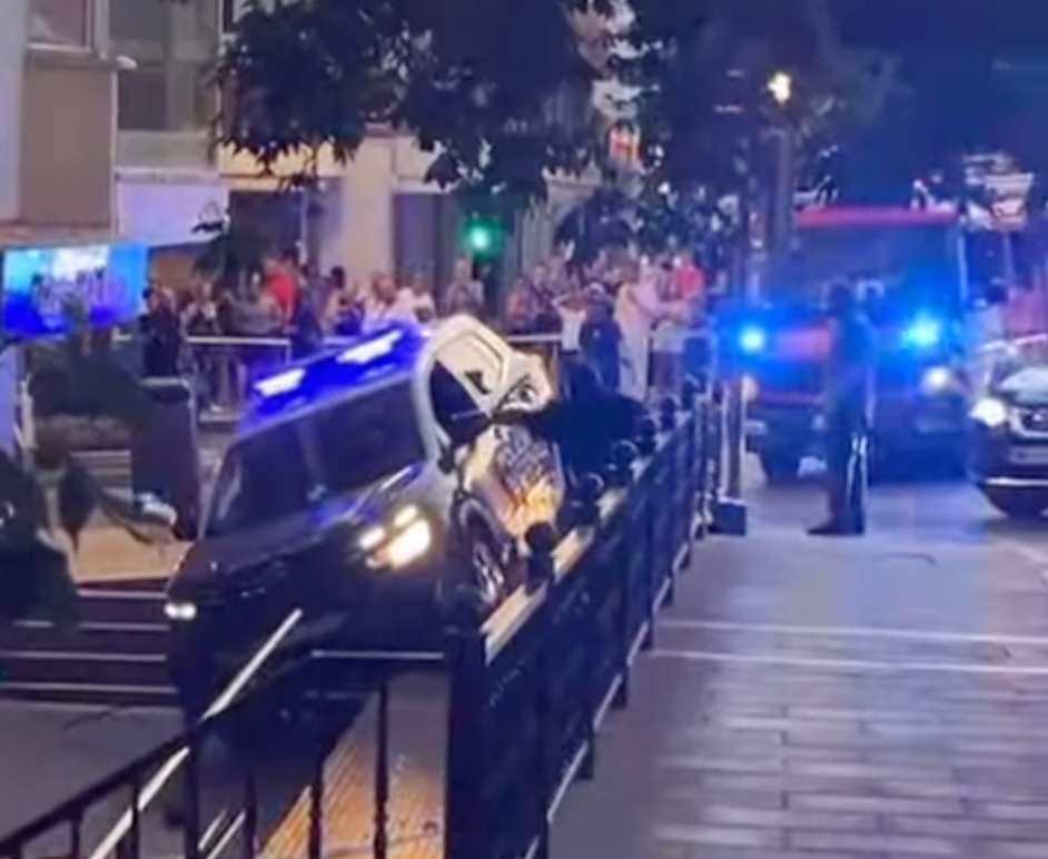Las imágenes enviadas a @marbellasequeja por los aturdidos espectadores mostraron que el automóvil giró a los pasos de pavimentos de detención que conducen a Highstreet Shops mientras los espectadores se abrazan o caen al suelo.