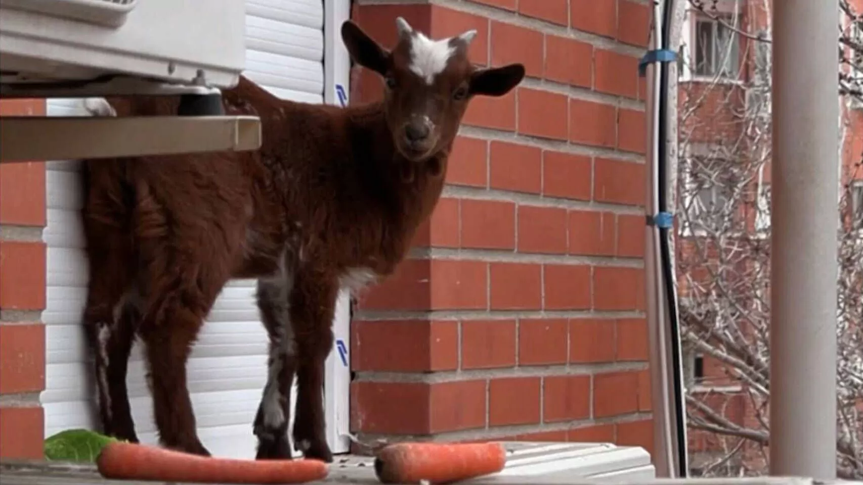 Una cabra fue rescatada de un alféizar del piso del quinto piso en Madrid, pero nadie sabe cómo llegó allí.