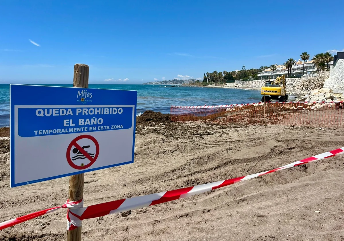 El agua contaminada se filtró del descanso, después de lo cual el Ayuntamiento de Mijas cerró inmediatamente la playa e implementó la prohibición de natación.