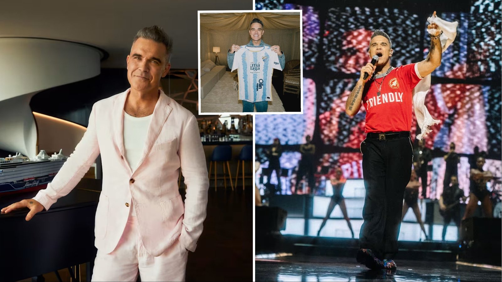 Robbie Williams haciendo olas en la Costa del Sol: ícono del pop Christens New Cruise antes de ponerse camiseta de fútbol de Málaga