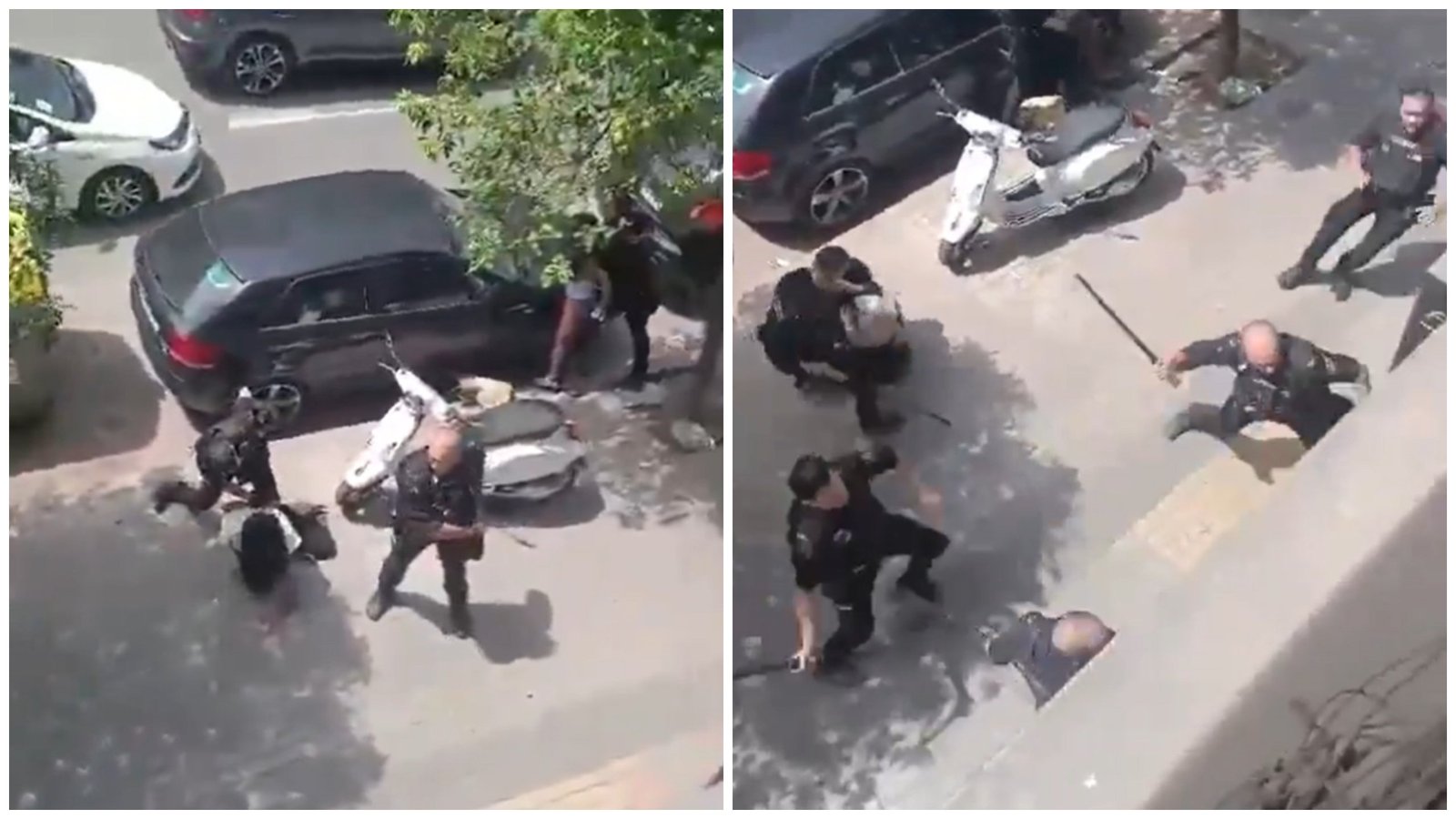 El video, filmado desde un balcón, muestra a una mujer colombiana arrojada al suelo, golpeada, esposada y luego arrastrada por los oficiales.