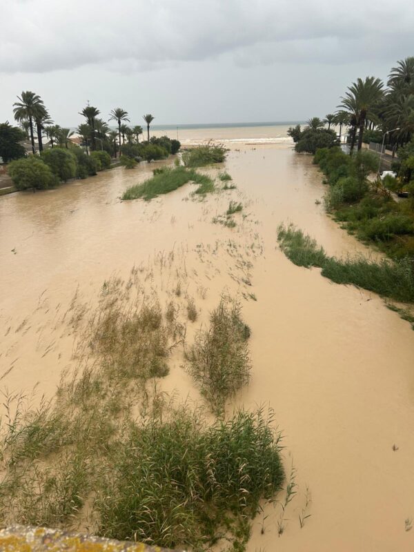 “En las zonas costeras se han acumulado entre 38 y 40 litros por metro cuadrado en las últimas seis horas, mientras que en Orihuela ciudad y pedanías cercanas la media total es de entre 15 y 18 litros. El agua corre con fuerza por las calles costeras, pero no se han reportado daños en viviendas ni comercios”.