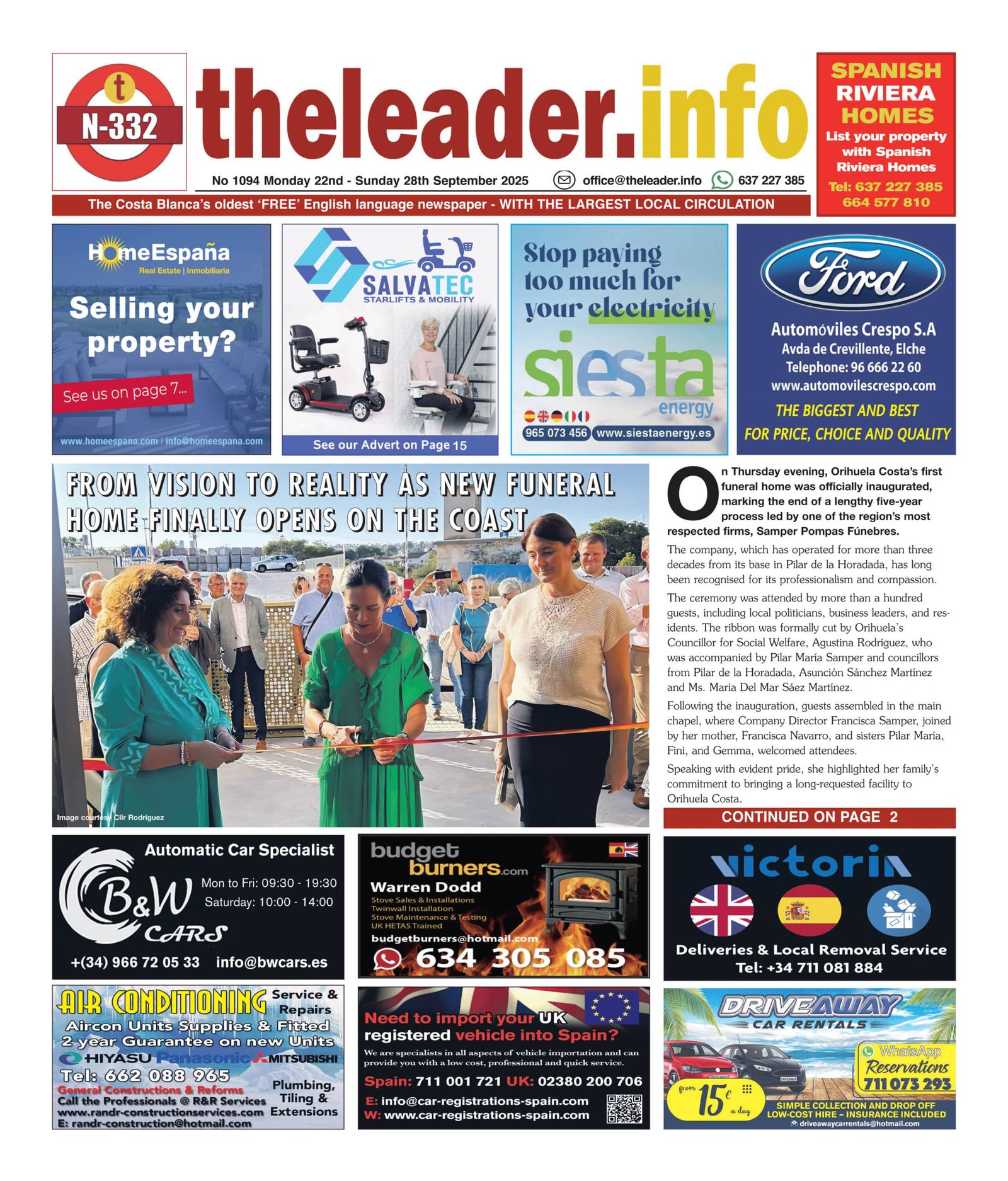 El jueves por la noche, la primera funeraria de Orihuela Costa fue inaugurada oficialmente, marcando el final de un largo proceso de cinco años dirigido por una de las empresas más respetadas de la región, Samper Pompas Fúnebres. La espera continúa, sin embargo, para un cementerio.