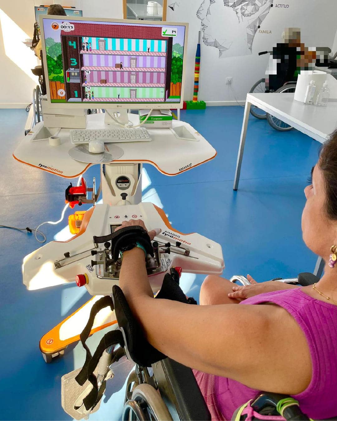 En Terapia Ocupacional, la atención se centró en recuperar la independencia en las Actividades de la Vida Diaria (AVD). Utilizando dispositivos robóticos Tyromotion (Amadeo, Diego y Pablo), junto con ejercicios de precisión y motricidad fina, Toñi fue mejorando progresivamente el movimiento, la fuerza y ​​la coordinación de su brazo izquierdo.