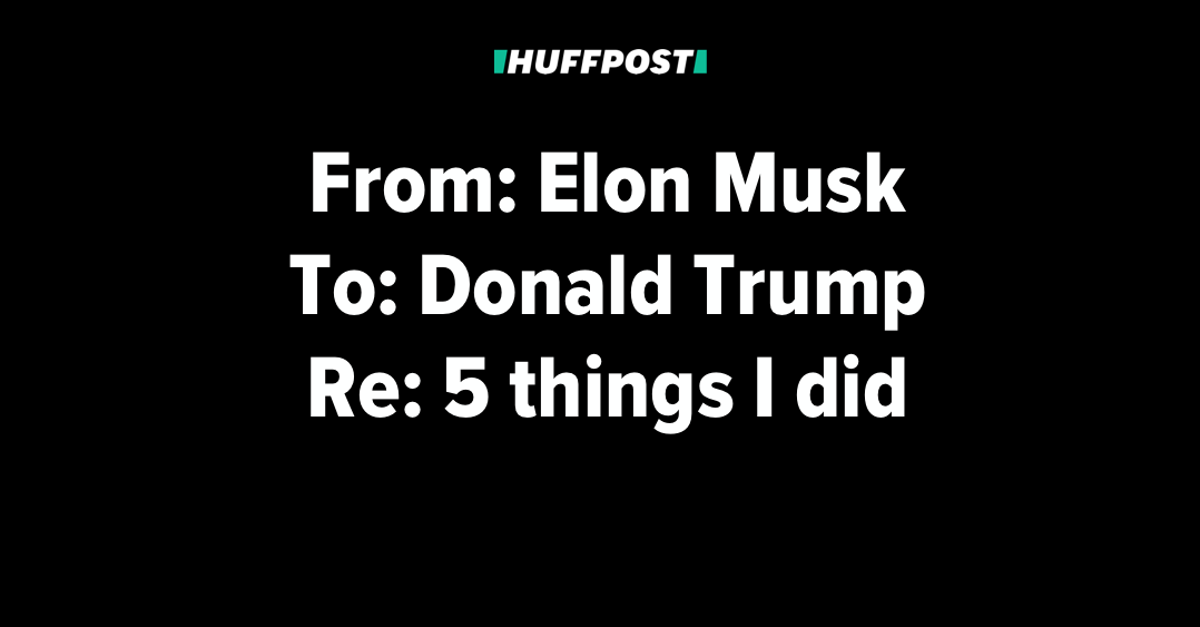 En honor a la partida de Musk, HuffPost ha compilado una lista de cinco cosas a las que Musk podría señalar como logros en un correo electrónico de inicio de sesión a Trump.
