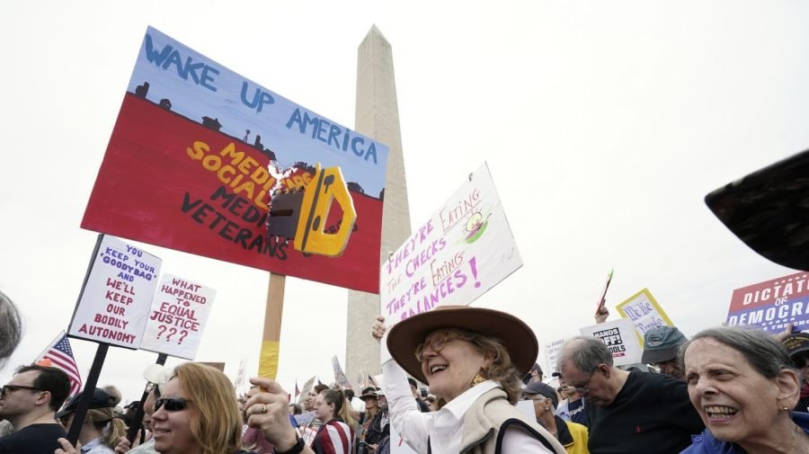 Los manifestantes exigen el fin de la influencia multimillonaria y la “corrupción desenfrenada” en la administración, una parada al Seguro Social y los recortes de Medicare, y el fin de los ataques contra personas trans, inmigrantes y otras comunidades marginadas.
