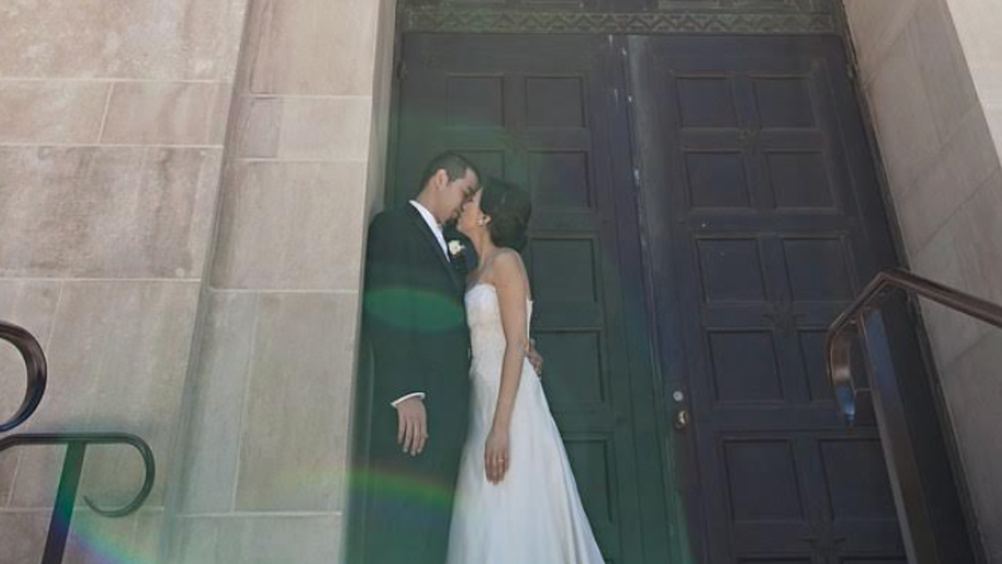 La autora y su esposo antes de su ceremonia de boda en la Biblioteca Central de Los Ángeles en 2009. Ninguno de los dos había tenido relaciones sexuales todavía.