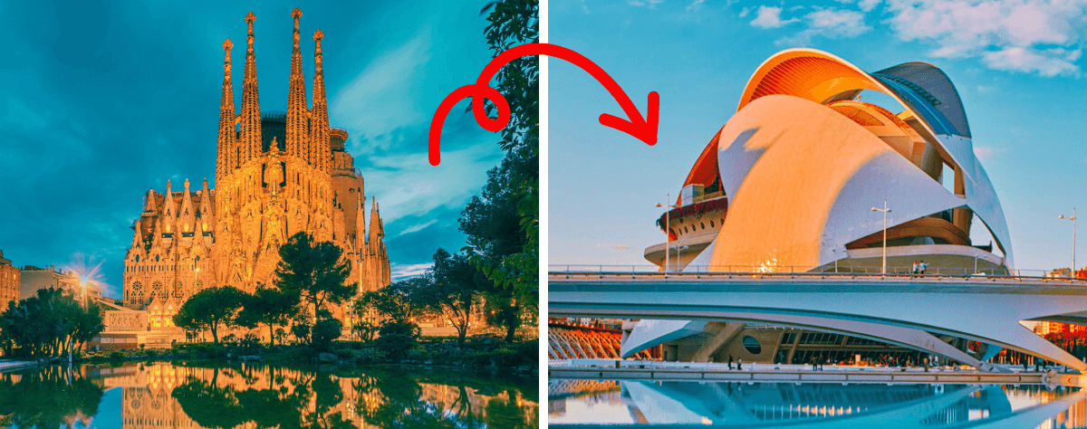 ¡Y la buena noticia es que Valencia está relativamente cerca de Barcelona para que sea una combinación conveniente en el mismo viaje! Valencia se encuentra a unos 350 km / 217.5mi al sur de Barcelona, lo que lo convierte en un viaje rápido: desde un vuelo de 1 hora, hasta 3 horas en tren, hasta 4 horas en automóvil. Pero, ¿cuál es la mejor manera de llegar de Barcelona a Valencia? Depende de sus necesidades y presupuesto, principalmente. ¡Exploremos juntos las opciones!
