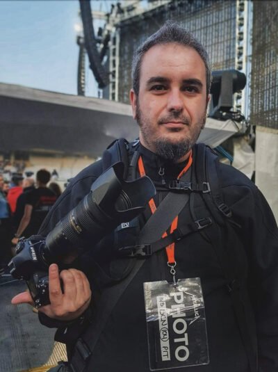 De hecho, para responder a su pregunta, dependiendo del trabajo, elijo un modelo de cámara u otro, así como de las lentes. Fotografiar una banda en una habitación con poca luz donde estás a medio metro de ellos no es lo mismo que fotografiar Robert Plant en Les Arts en Valencia o Metallica en el Metropolitano, donde tienes que disparar desde 50 metros de distancia con una gran lente de teleobjetivo. Actualmente, mis dos cámaras principales son un Nikon Z6 y un Z8, y estoy muy contento con ambas. Con respecto a las lentes, hay un poco de todo. Para lugares, generalmente uso un zoom de gran angular y mediano. Para estadios y festivales, debes ir más allá con zoom de 200 mm o más. Lo importante es que siempre usan lentes que capturan mucha luz, porque en los conciertos, la luz es escasa y la acción es muy rápida. Necesitas un buen equipo porque todo funciona en tu contra.