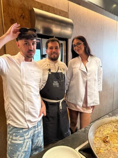 ¡Naomi también se convirtió en parte del equipo de Vaqueta! Uno de los momentos más entretenidos del almuerzo llegó cuando Naomi realmente se convirtió en la estrella del restaurante. En un momento, pasó de ser una restauradora a ponerse el sombrero de su chef para ayudar a preparar parte del paella valenciana Eso coronó la celebración. Demostrando su pasión y entusiasmo por conectarse con la cocina de su patria, el influencer no dudó en poner un delantal y cocinar para sus amigos, quien compartió este momento divertido con sus espectadores dedicados en sus redes sociales.