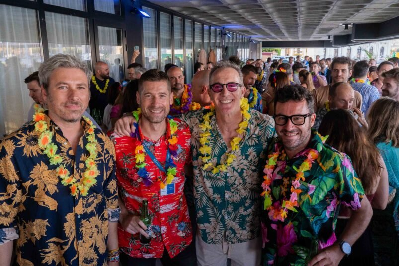 Los ejecutivos de la Cámara de Comercio, Finegador, Zubi, Evap, Funderz y Cross Legal unen fuerzas para dar la bienvenida a las vacaciones con buenas vibraciones hawaianas. Valencia, 18 de julio de 2025. El Hub Terminal da la bienvenida al verano o se despide del año escolar con una fiesta de Aloha hawaiana, un concierto de proyecto de portada latina, la gran música de Kid Rizzo, la brisa del Marina de Valencia y las buenas vibraciones de los ejecutivos de las compañías tecnológicas e innovación que forman parte del ecosistema del área. Y, por supuesto, todos lavados con los mejores cócteles y cocina mediterránea y saludable desde el frente, especialmente diseñada por el chef Juan Torres para la ocasión.